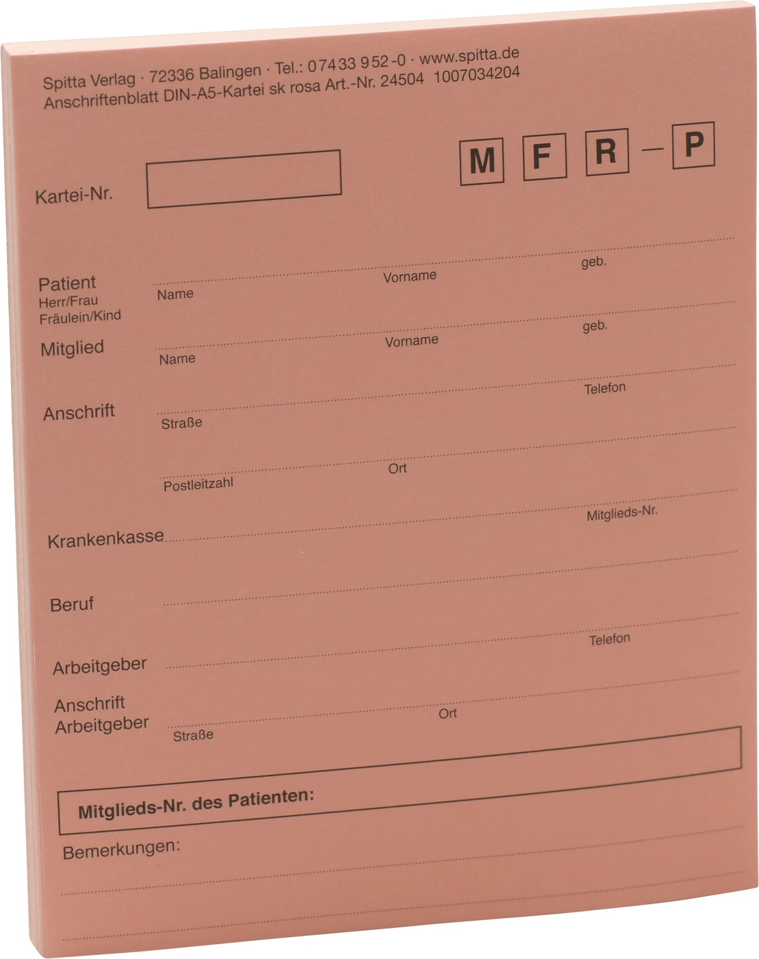 Anschriftenblatt für DIN A5-Karteikarte – Stück 50 Blatt rosa